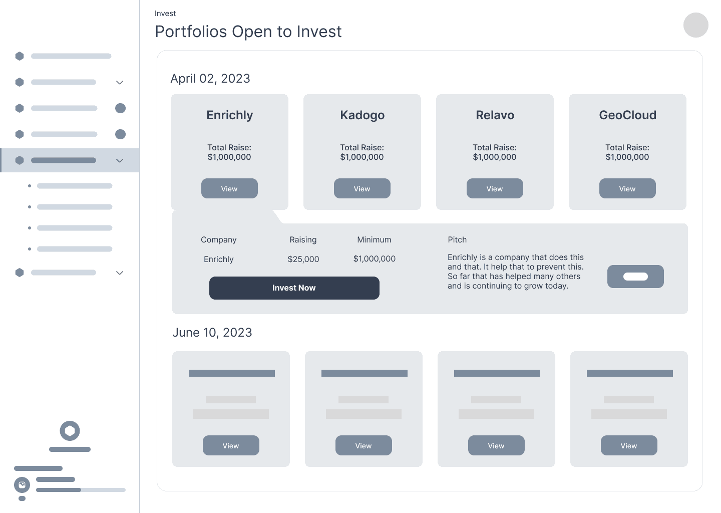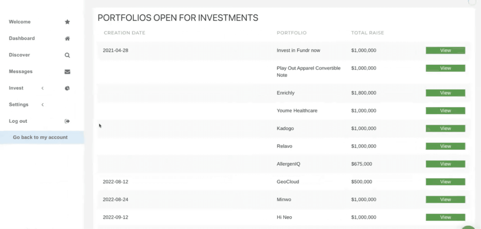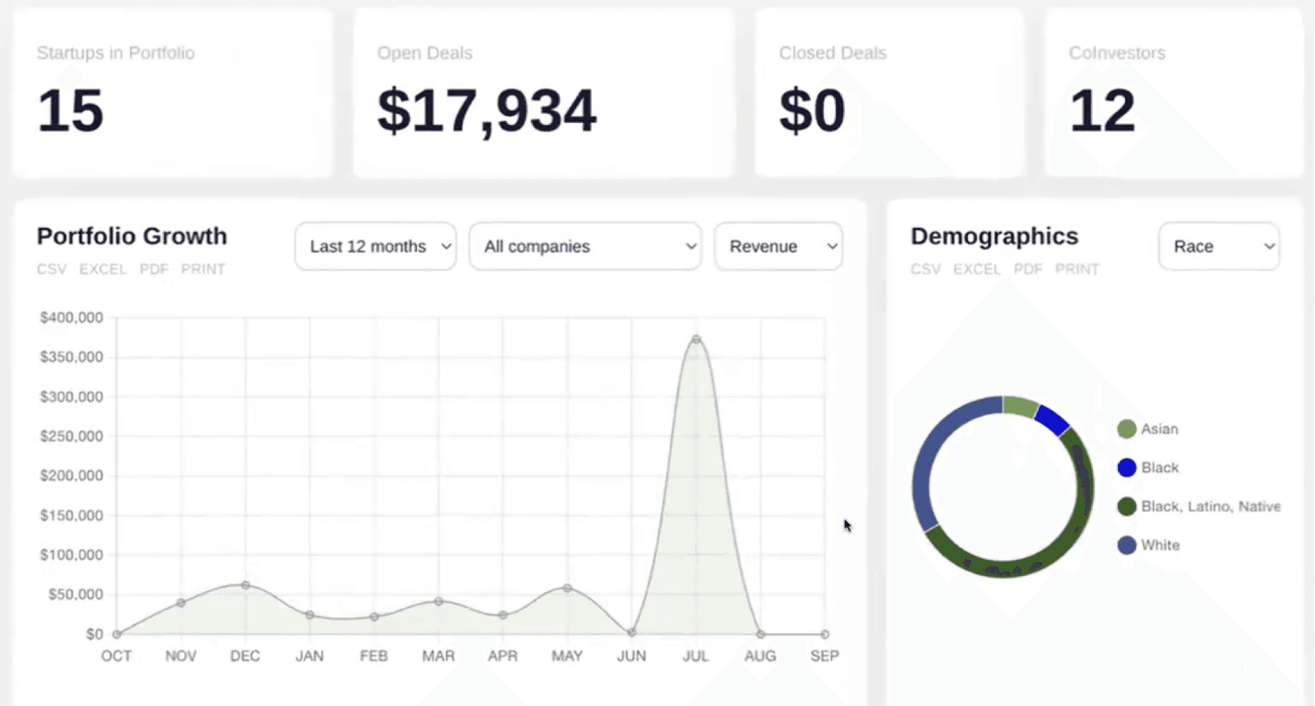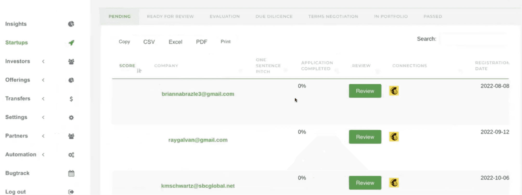 - Users are allowed a certain number of startups in their portfolio before they are hit with the upgrade. - Users can quickly view any updates or other important information such as status, related preferences, and estimation.